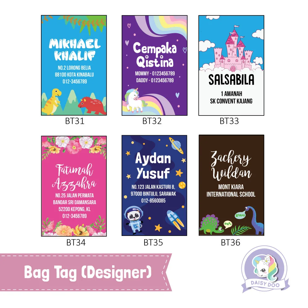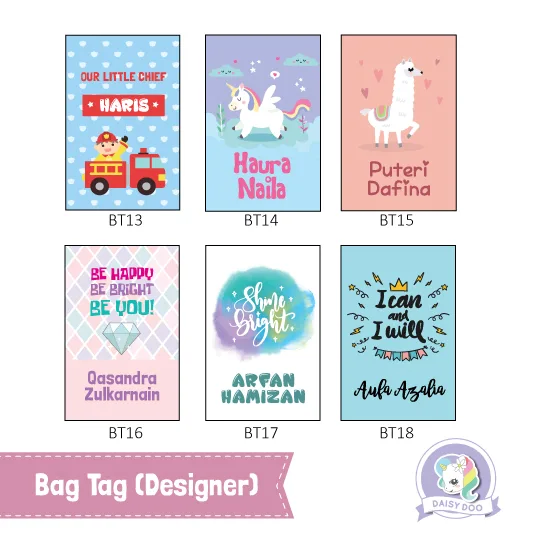 RM 39.00This Bag Tag (Classic) helps your kids stop lost belongings with a simple designs that you can choose from. Each Bag Tag comes with a sturdy plastic loop that easily wraps around the handle of all sized bags.