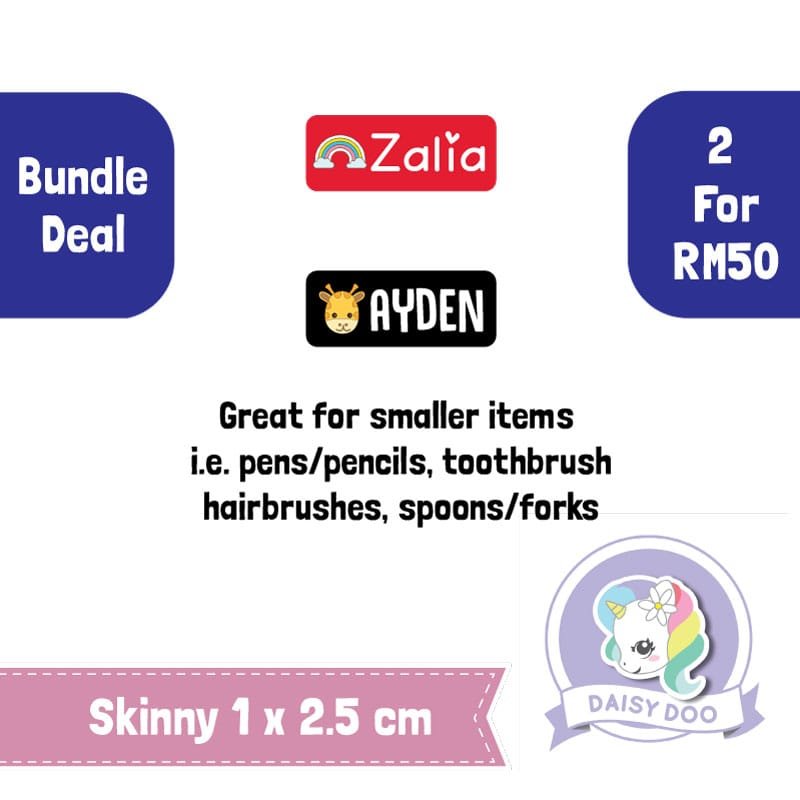 RM 35.00These durable Skinny Name Labels will help to make lost property a thing of the past.These name labels a perfect size for labelling all your kids belongings, from lunch containers to school books.