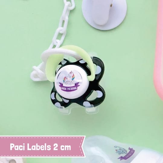 Your kids will easily spot their belongings with these Paci Name Labels. These small name labels are perfect for sticking to baby pacifier or any small belongings! You can stick them onto most types of smooth plastics, and best of all they’ll stay stuck in even the toughest dishwasher cycle.